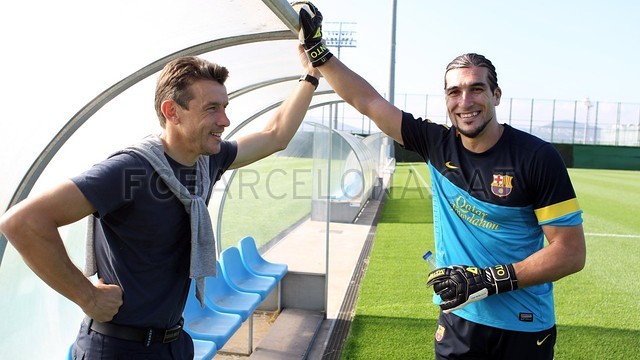 Экс-тренер вратарей Хуан Карлос Унсуэ присутствовал на тренировке на "Сант Жоан Деспи". Он немного пообщался с тренерским штабом и игроками.